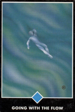Фигура на этой карте совершенно расслаблена, ей легко в воде. Она позволяет нести себя потоку туда, куда он хочет. Человек овладел мастерством быть пассивным и восприимчивым, не будучи скучным или сонным. Он просто доступен потокам жизни. Ему никогда не приходит в голову сказать ″мне не нравится это″ или ″я предпочитаю идти другим путем″. В каждый момент жизни у нас есть выбор: либо войти в воды жизни и отдаться течению, либо пытаться плыть против течения. Если появляется эта карта, то это означает, что вы можете сейчас отдаться течению, доверяя тому, что жизнь будет поддерживать вас в вашем расслаблении. И приведет вас именно туда, куда она хочет, чтобы вы пришли. Позвольте этому чувству доверия и расслабленности расти больше и больше; все происходит именно так, как должно быть.
